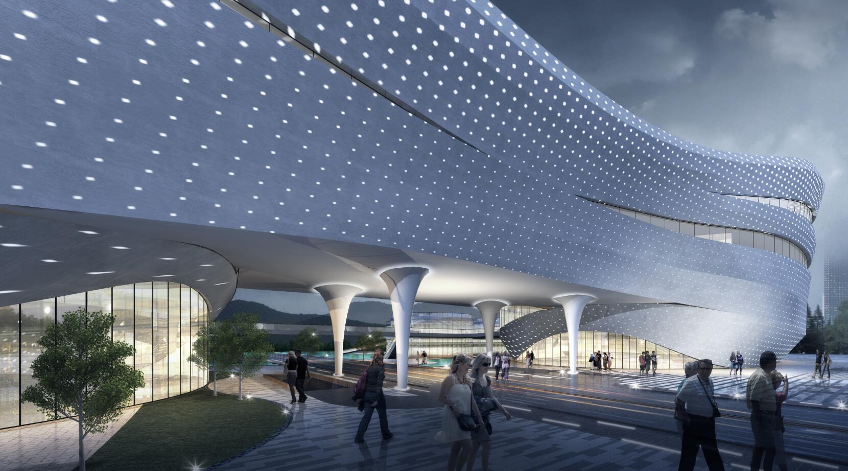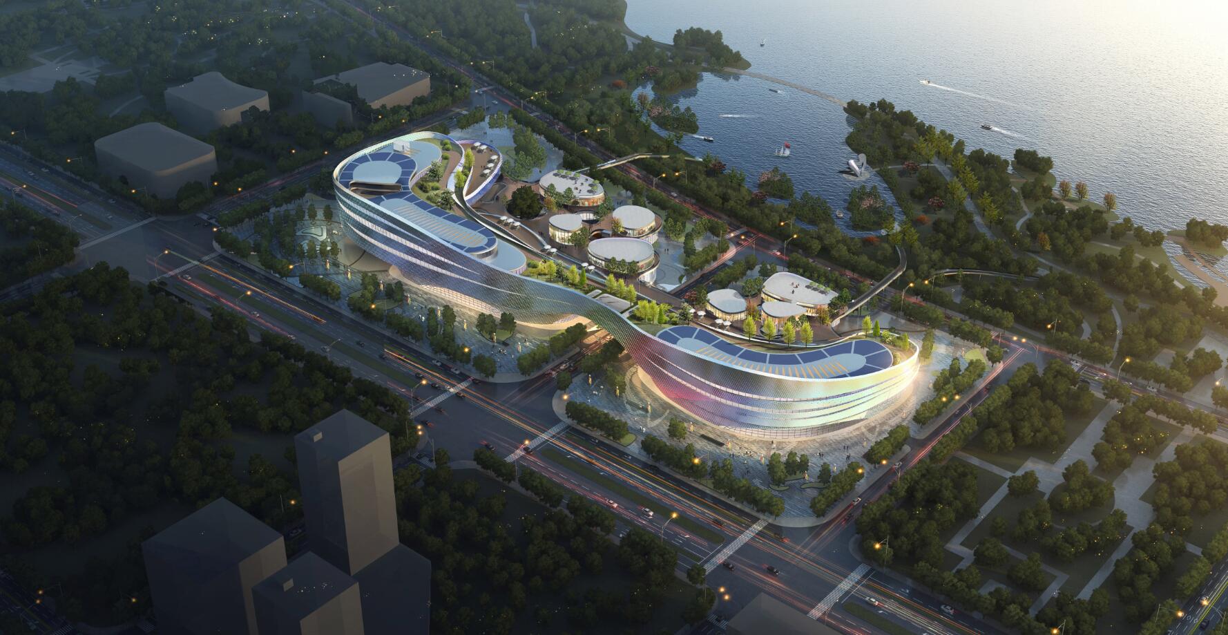 九江市鄱陽湖生態(tài)科技城科創(chuàng)中心幕墻工程位于江西省九江市廉溪區(qū)琴湖大道,幕墻面積約70000㎡,外立面為流線形開放式鋁板幕墻。