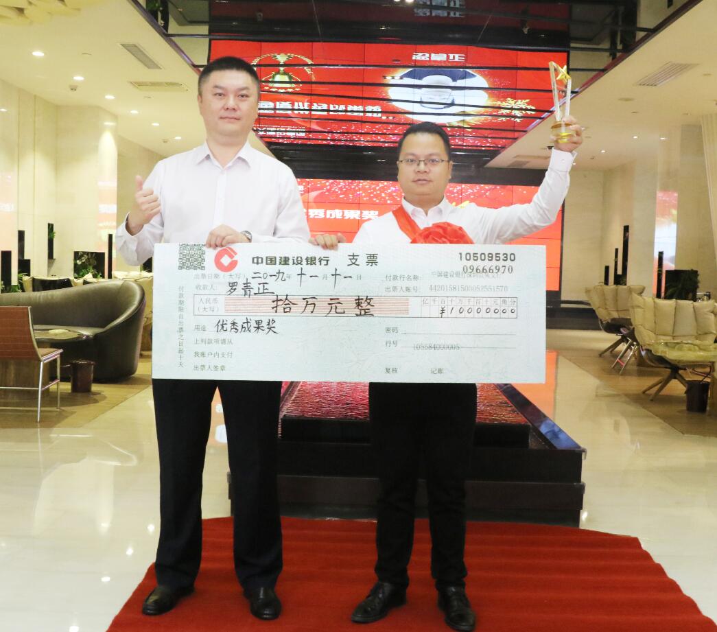 集團(tuán)副總裁、幕墻設(shè)計院院長羅青正執(zhí)行“以設(shè)計帶施工”的發(fā)展戰(zhàn)略,憑借高超、專業(yè)的設(shè)計服務(wù),在國家技術(shù)轉(zhuǎn)移鄭州中心幕墻工程項目的拓展中做出突出貢獻(xiàn),被授予優(yōu)秀成果獎,獎勵10萬元。圖為黃河副董事長與獲獎?wù)吆嫌傲裟睢?/span>