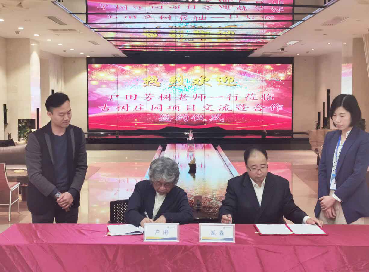 2019年12月10日,日本當代著名園林景觀大師——戶田芳樹先生一行攜手凱森林業,正式簽約《千年古樹莊園》項目設計合作協議,凱森林業總裁孫學武代表公司簽約,董事長徐凱宏見證這一歷史時刻。