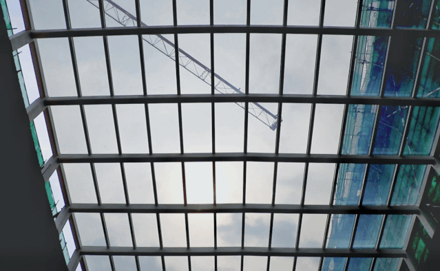 144塊玻璃、一塊400多斤,在接到甲方的施工要求后,博大僅用一天半的時間,便在高達15米的屋面完成調(diào)光玻璃幕墻的安裝。