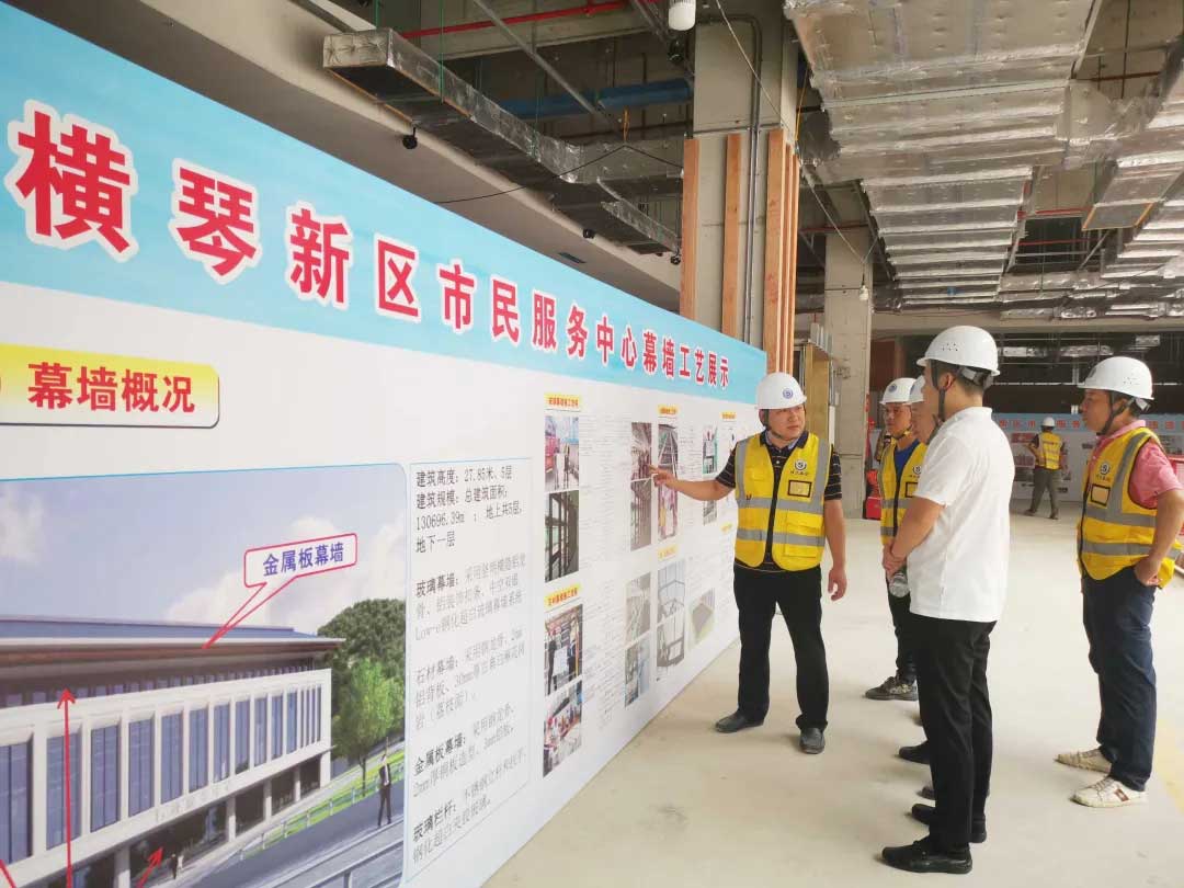 8月31日下午,中建三局南方區(qū)域組織旗下100余名管理人員前往珠海橫琴新區(qū)市民服務(wù)中心建設(shè)項目觀摩學(xué)習,博大建設(shè)集團作為幕墻方向的施工單位,詳細向觀摩團展示博大幕墻的新科技、施工工藝工法和最終呈現(xiàn)效果。