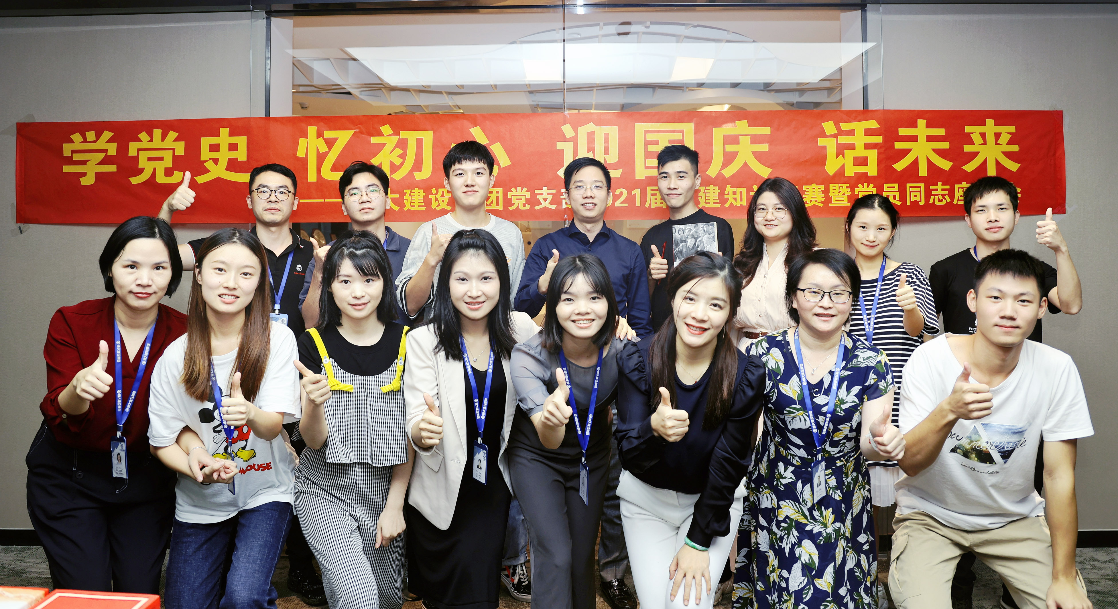 百年大黨,風華正茂。在建黨百年的特殊節點,為進一步學習貫徹習近平新時代中國特色社會主義思想、豐富黨員和積極分子的黨建知識。9月29日下午,博大建設集團黨支部隆重舉行了以“學黨史、憶初心、迎國慶、話未來”為主題的2021屆黨建知識競賽暨黨員同志座談會?;顒佑牲h支部林曉彤書記主持,近20位黨員和積極分子參加。