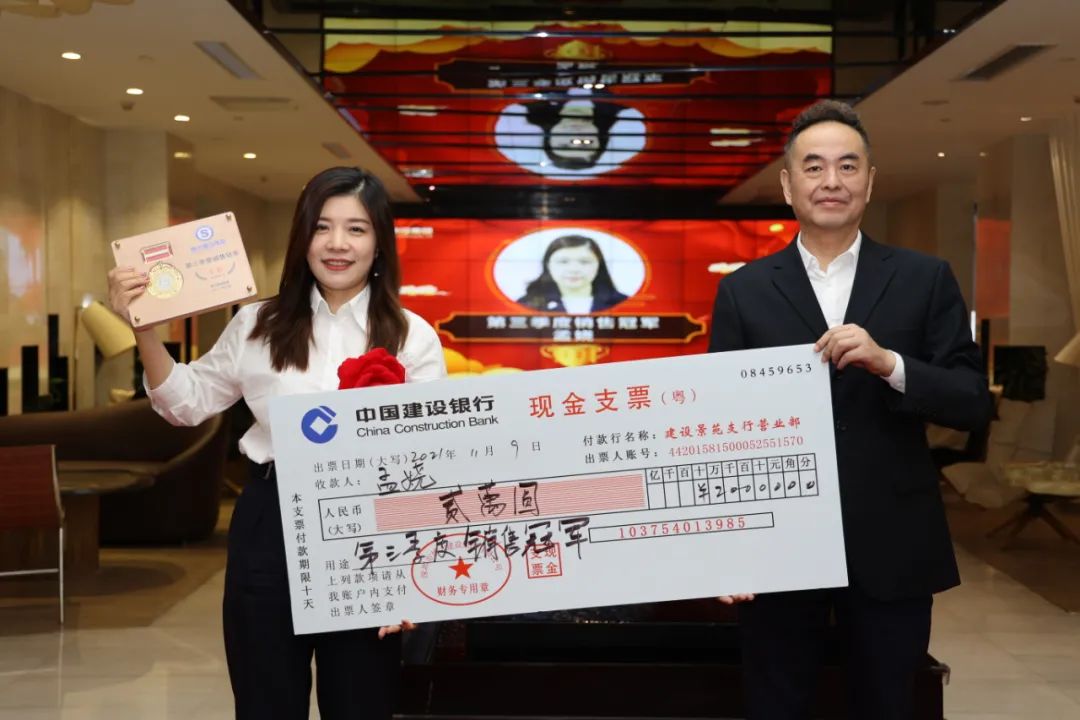 圖 | 董事長洪宇為孟嬈頒發第三季度銷售冠軍獎